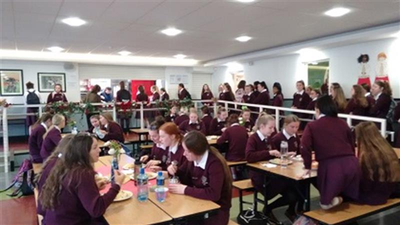 It was CHRISTMAS in the canteen today for all Senior Years. Thanks to the STUDENT COUNCIL and WELL BEING TEAM for their efficient and organised event management and to their co-ordinators Ms Ryan and Ms Cullen for their supervision. A huge thank you also to Nikki and John in the canteen for their Trojan work and tasty food.